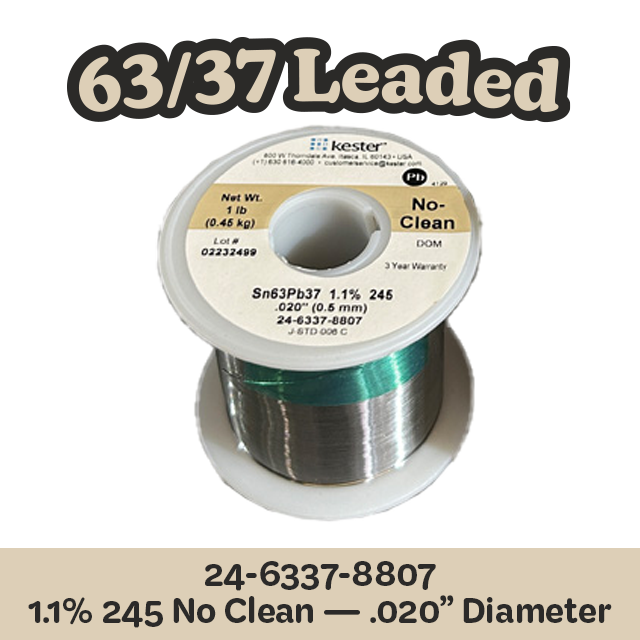 Solder Wire: Kester .020" 24-6337-8807 Sn63Pb37 1.1%/245
